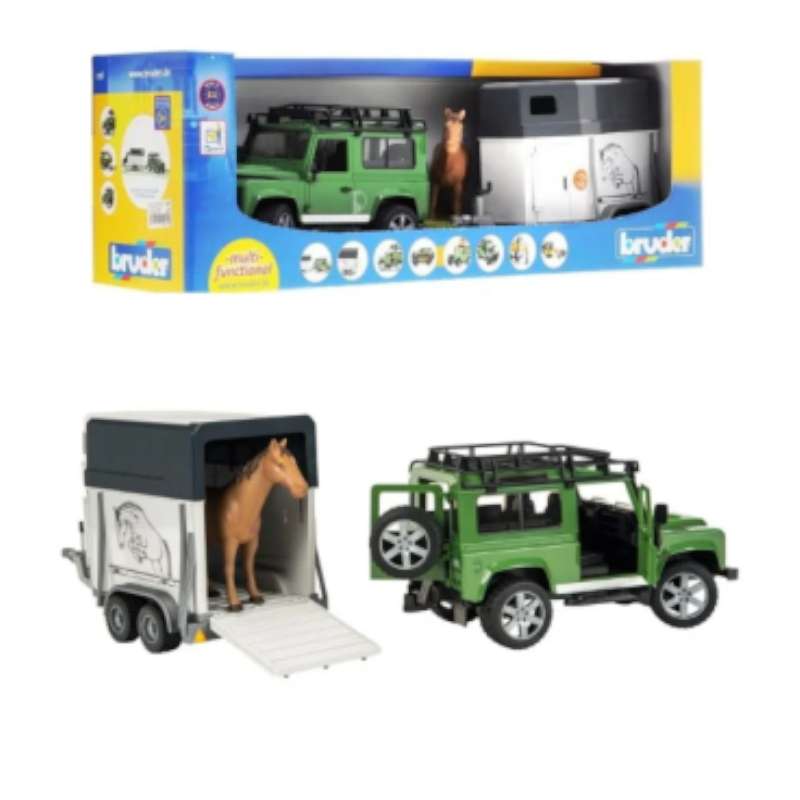 Land Rover Defender JEEP i prikolica s konjem – Bruder