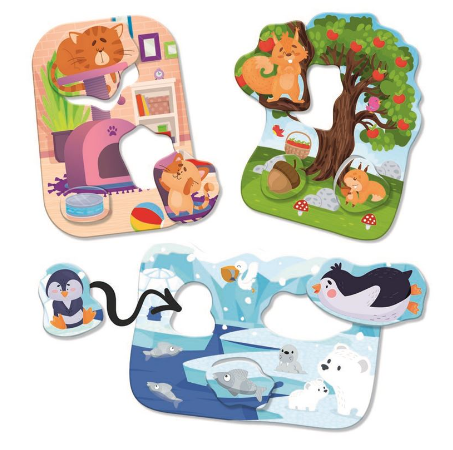 Igrajte se sa štencima! Svako štene ima svoj dom i svoju hranu! Igra asocijacija za razvoj logičkih vještina. Sa sigurnim i otpornim materijalima prikladnim za djecu.
