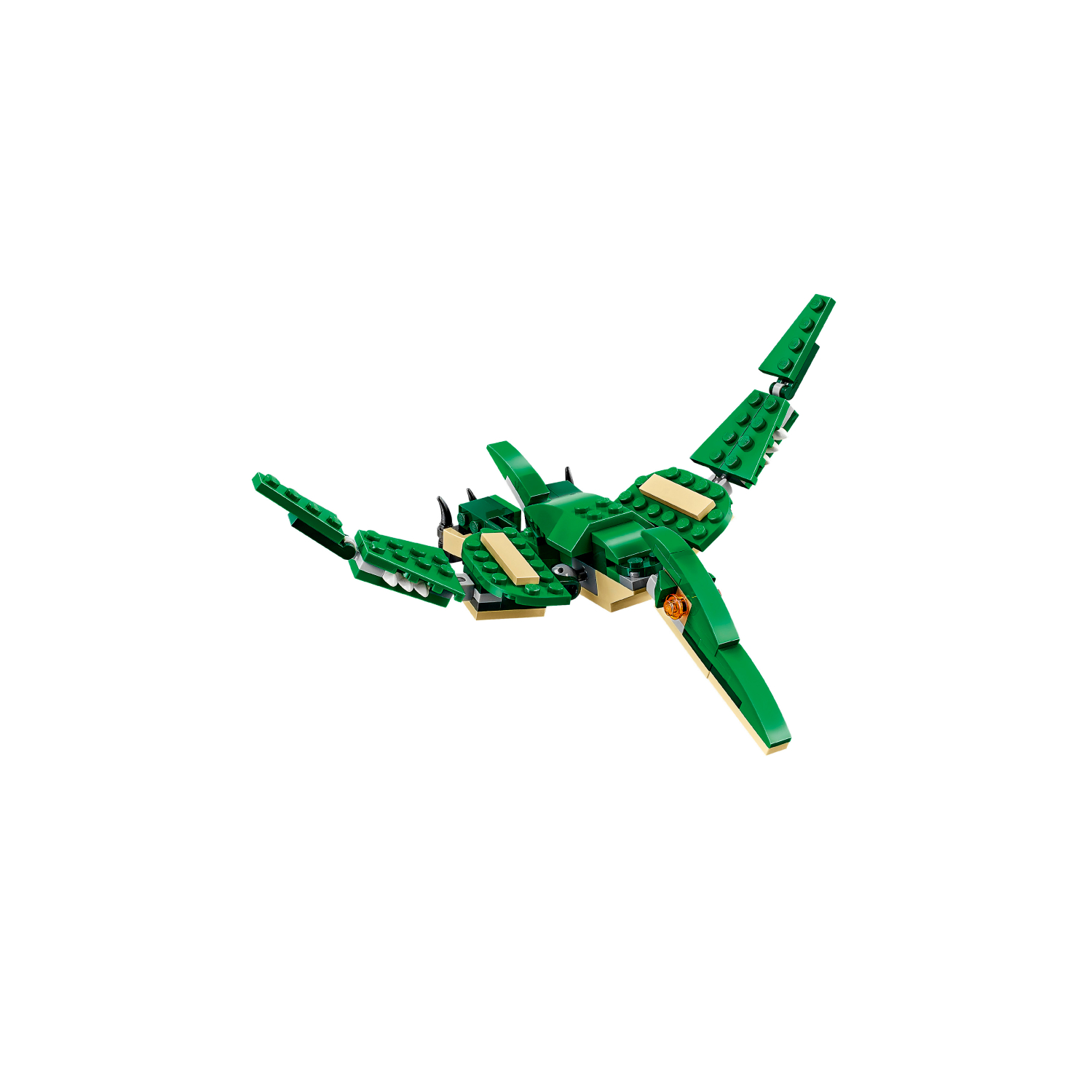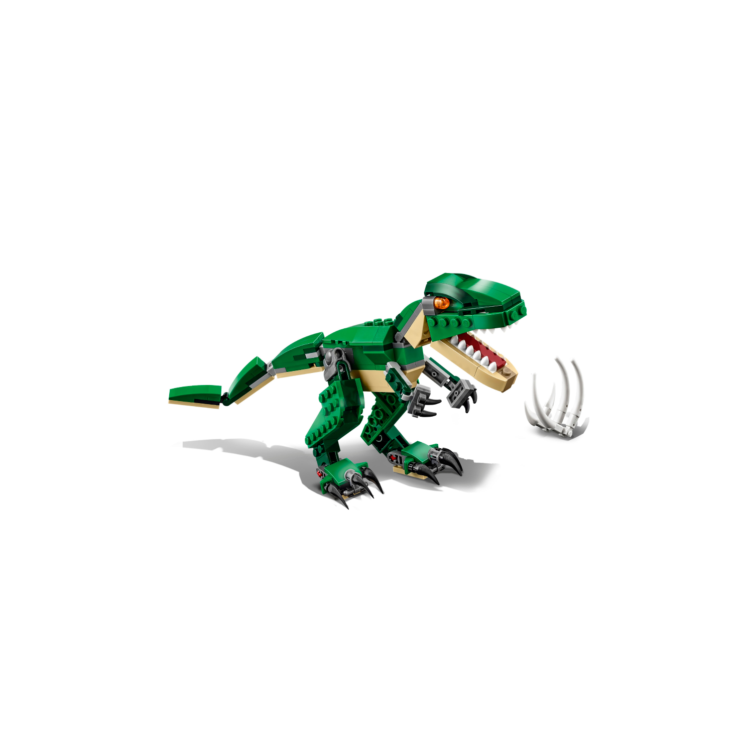 Zatresi zemlju sa strašnim T-Rexom, u kombinaciji tamnozelene i bež boje i sa svijetlonarandžastim očima. Otvori mu usta i otkrij oštre zube, namjesti ogromne kandže i pomiči mu glavu i rep. Set sadrži i ostatke posljednjeg plijena T-Rexa! Pretvori ga u druge moćne dinosaure – snažnog triceratopsa ili strašnog pterodaktila.