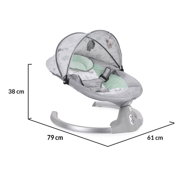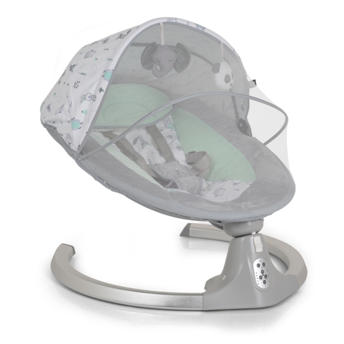 Postoji 5 brzina ljuljanja, tajmer sa 3 puta, 12 divnih melodija, pojas sa 3 točke, baldahin sa mrežom protiv insekata sa 2 mekane igračke i funkcija „nagnuta kolijevka“ pri zaključavanju mehanizma.