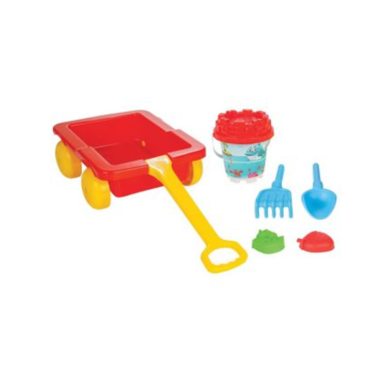 - Osim kolica u koja možete ponijeti puno pijeska, ali i mnogo igračaka, vaše će dijete uživati i u kantici u kojoj se nalaze lopata, grablje i dva kalupa za pijesak